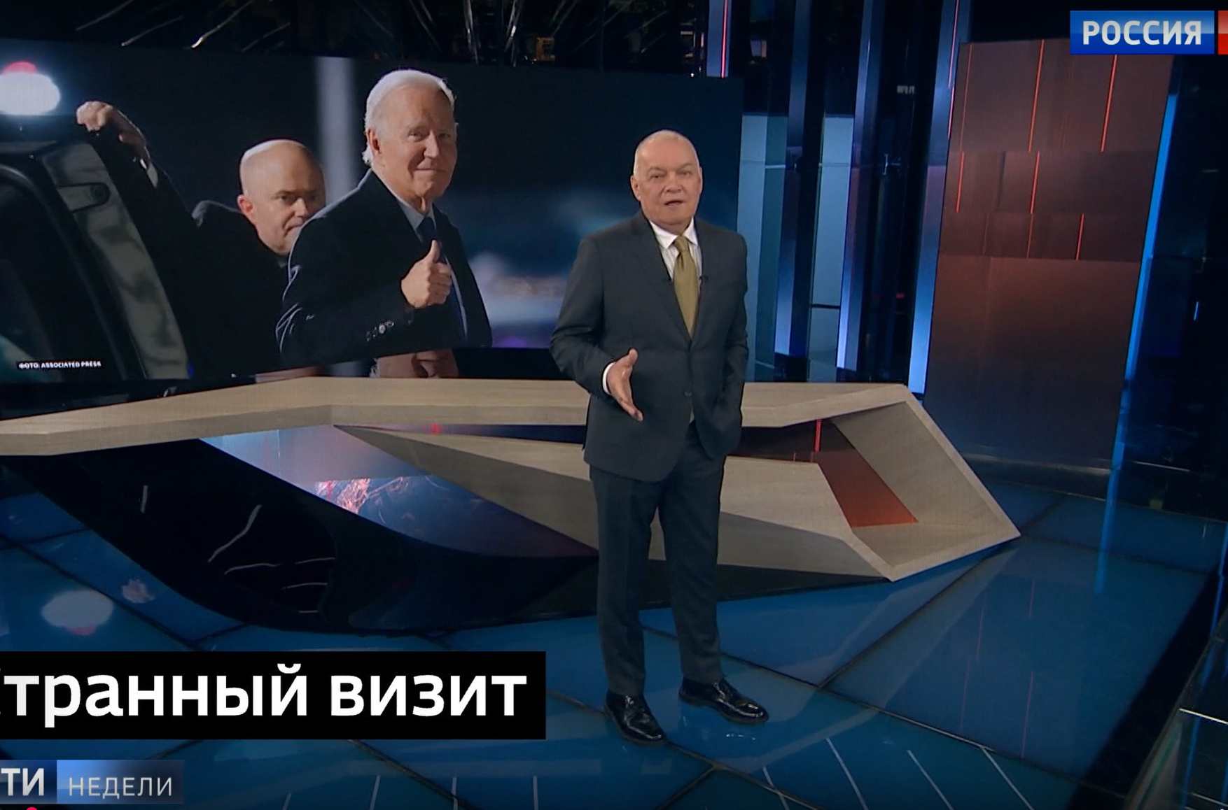 Ведущий «Вестей недели» Дмитрий Киселев, предваряя рассказ о визите Джо Байдена в Ирландию и Великобританию, не упустил случая посмеяться над промахом президента: