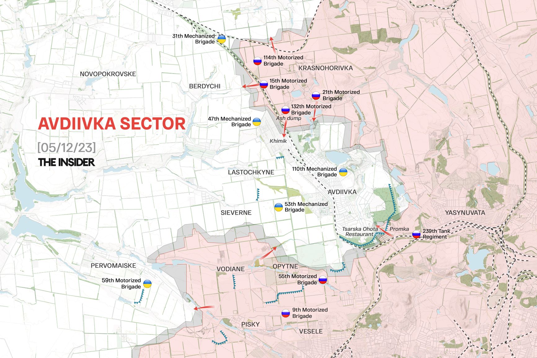 The former separatist Pyatnashka (15th) brigade, recently returned from rehabilitation, has appeared near Avdiivka. On the Ukrainian side, the 47th Mechanized Brigade, also rehabilitated after engagements in Zaporizhzhia, is actively involved in this direction. The brigade, equipped with Bradley Infantry Fighting Vehicles and Leopard 2 tanks, effectively demonstrates its capabilities in active defense, leveraging high reverse movement speeds.