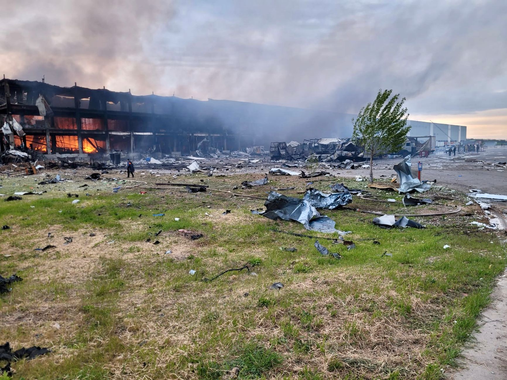 Утром 8 мая украинское оперативное командование «Юг» сообщило, что россияне обстреляли Одесскую область ракетами Х-22, попав по продовольственному складу и рекреационной зоне на черноморском побережье. Как отмечали в группе CIT, по фотографиям ликвидации последствий видно, что горящее здание — не склад боеприпасов, так как пожарные работают вблизи от него, не опасаясь вторичных детонаций. Позднее в тот же день «Общество Красного Креста Украины» сообщило, что сгорел склад организации с гуманитарной помощью, в результате чего ее выдачу в Одесской области пришлось приостановить.