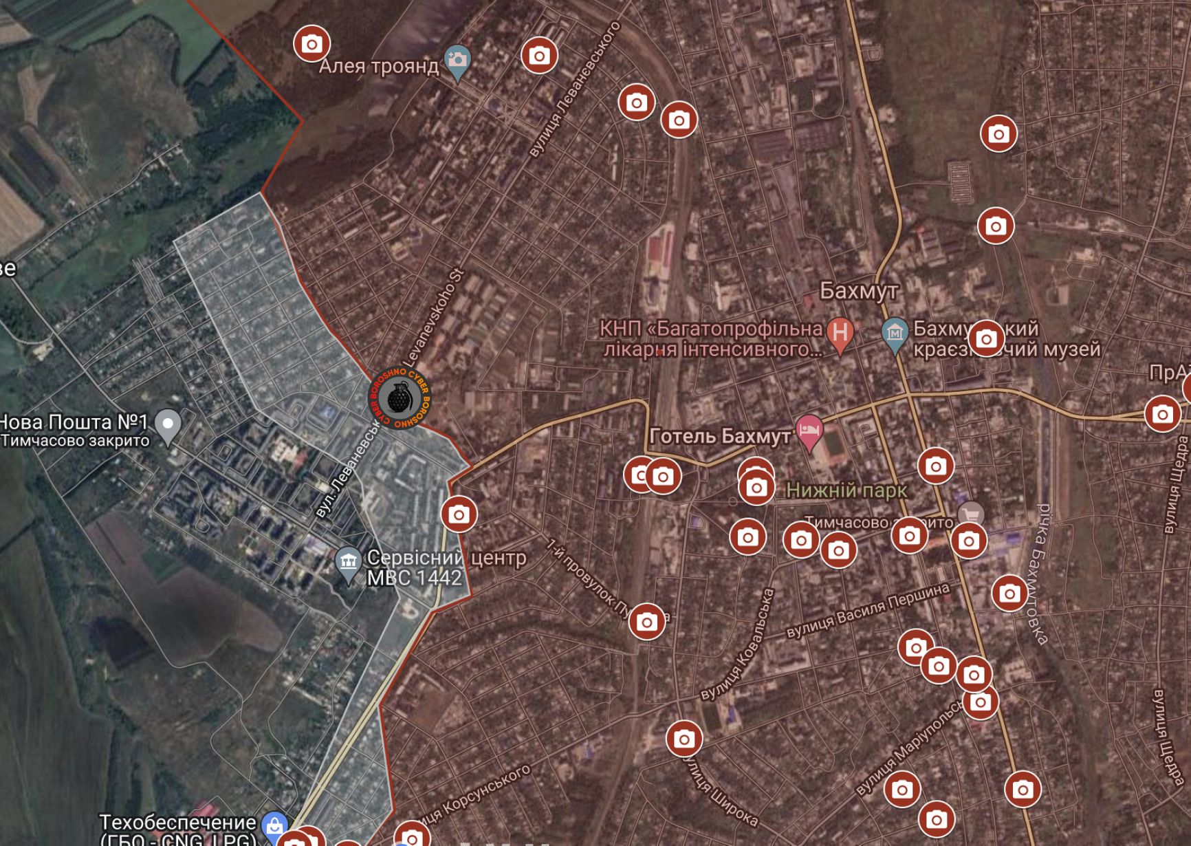 В Telegram-канале РИА «Новости» было опубликовано видео со штурмом «вагнеровцами» одного из зданий в западной части Бахмута. Также в соцсетях циркулирует видео с отходом военнослужащих ВСУ с первого этажа многоквартирного дома, на втором и третьем этажах которого каким-то образом оказались российские наемники. Геолокация инцидента позволяет определить примерную линию боевого соприкосновения в городской черте.