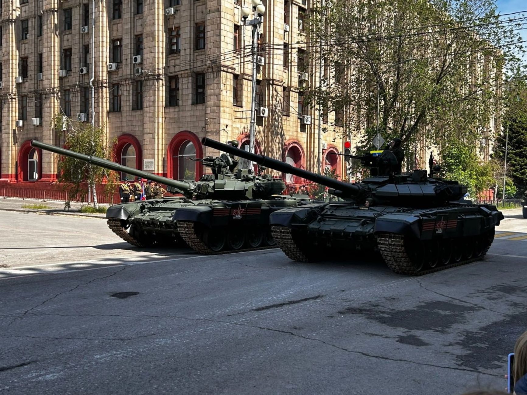 В Волгограде на репетиции парада засветились танки Т-90С. Это модификация танка Т-90, предназначенная для иностранных заказчиков, которую в 2022 году начали передавать в строевые части ВС РФ и даже в ЧВК Вагнера.