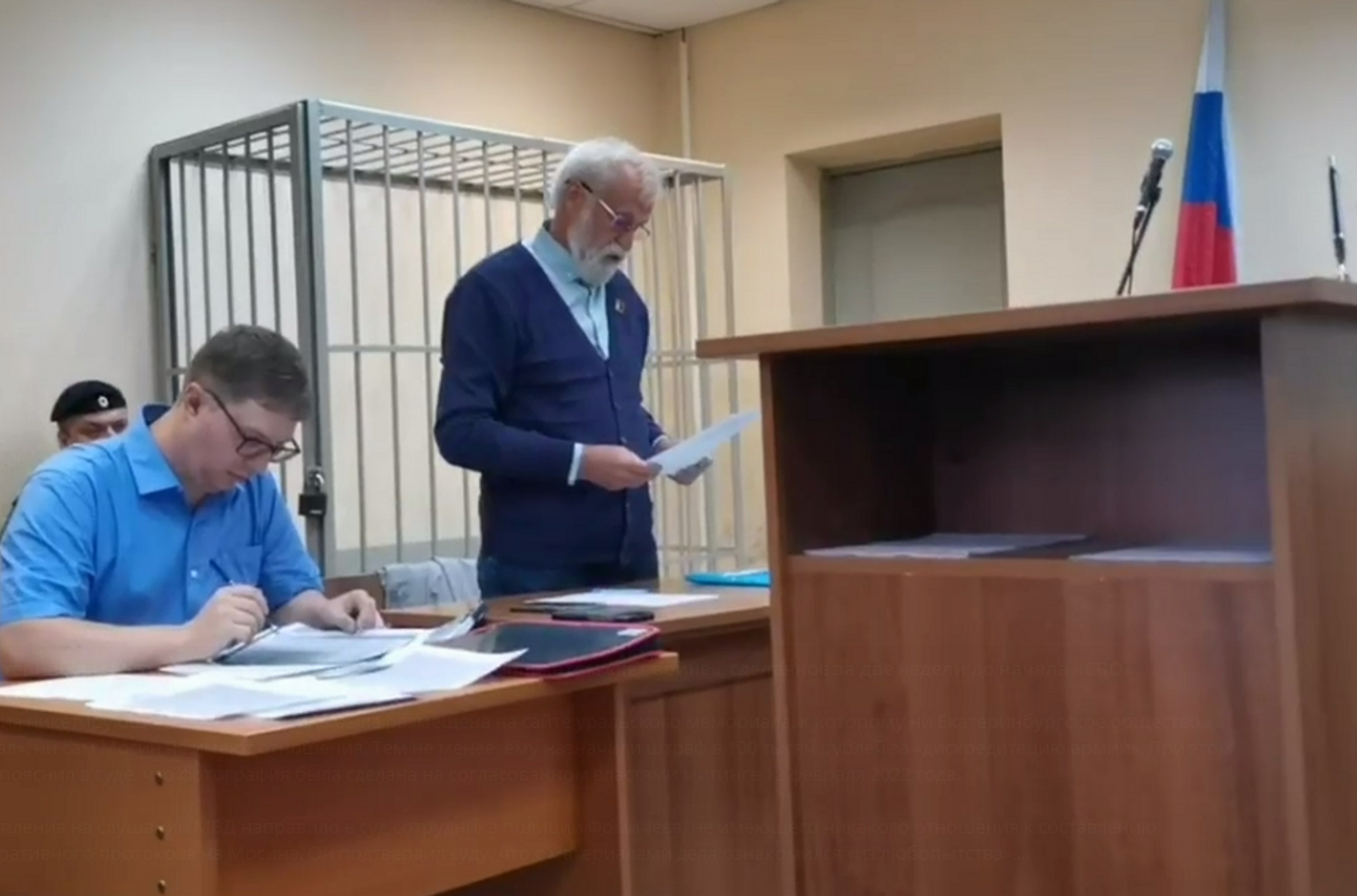 Мосин сообщил суду, что фото было сделано на согласованном властями митинге еще 12 февраля 2022 года, то есть почти за две недели до начала полномасштабного вторжения российских войск в Украину. Статья о «дискредитации» армии появилась в КоАП в марте того же года.