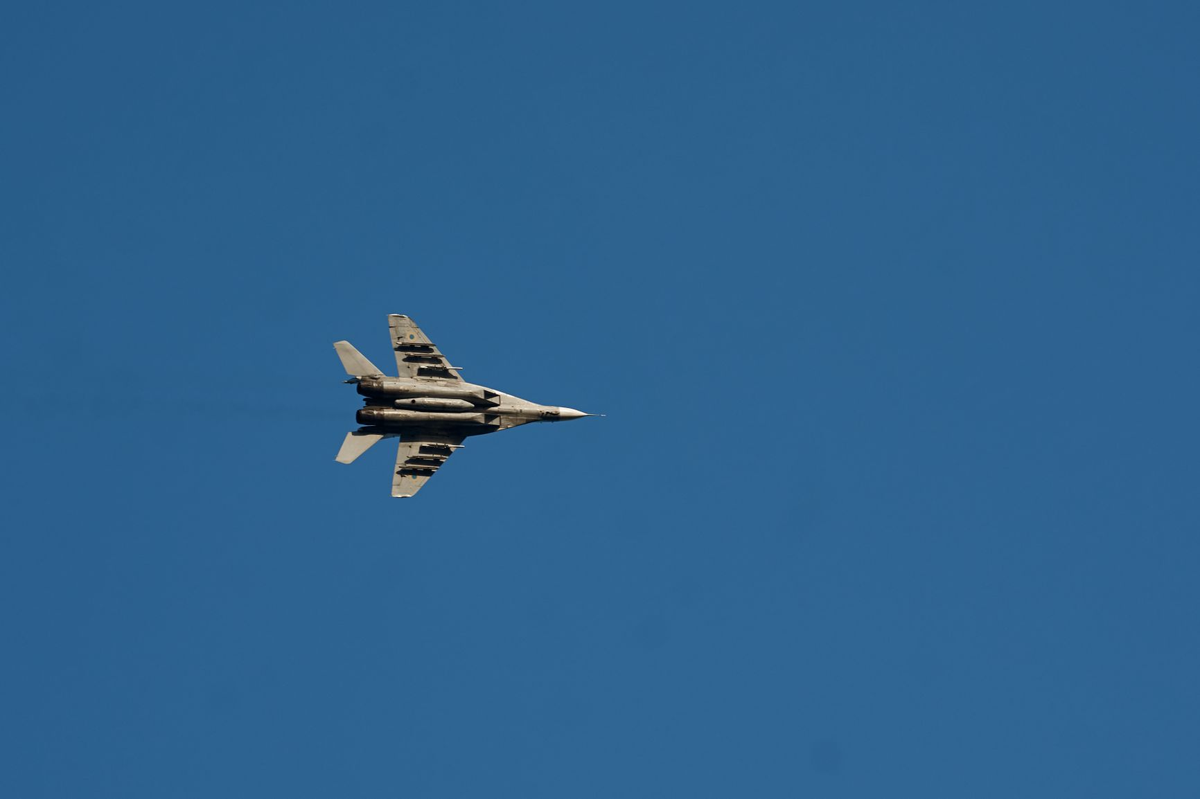 Воздушные силы ВСУ опубликовали фотографию истребителя МиГ-29 с подвесом для неизвестного типа вооружения (вероятно, боеприпасов JDAM).