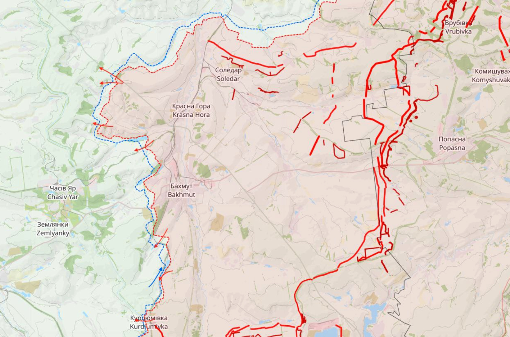 «Ситуация вокруг Бахмута для нас складывается сейчас нехорошая. После серьёзного наката к западу от Соледара в районе Зализнянского во второй декаде августа противник значимой активности на северном фланге пока не проявлял, однако на южном сумел добиться продвижения на рубеже Клещеевка — Курдюмовка. Идут бои за железку, противник давит с севера на Курдюмовку, цель на обозримую перспективу — перехват рокады Горловка — Бахмут и фланговый охват наших войск в Бахмуте.