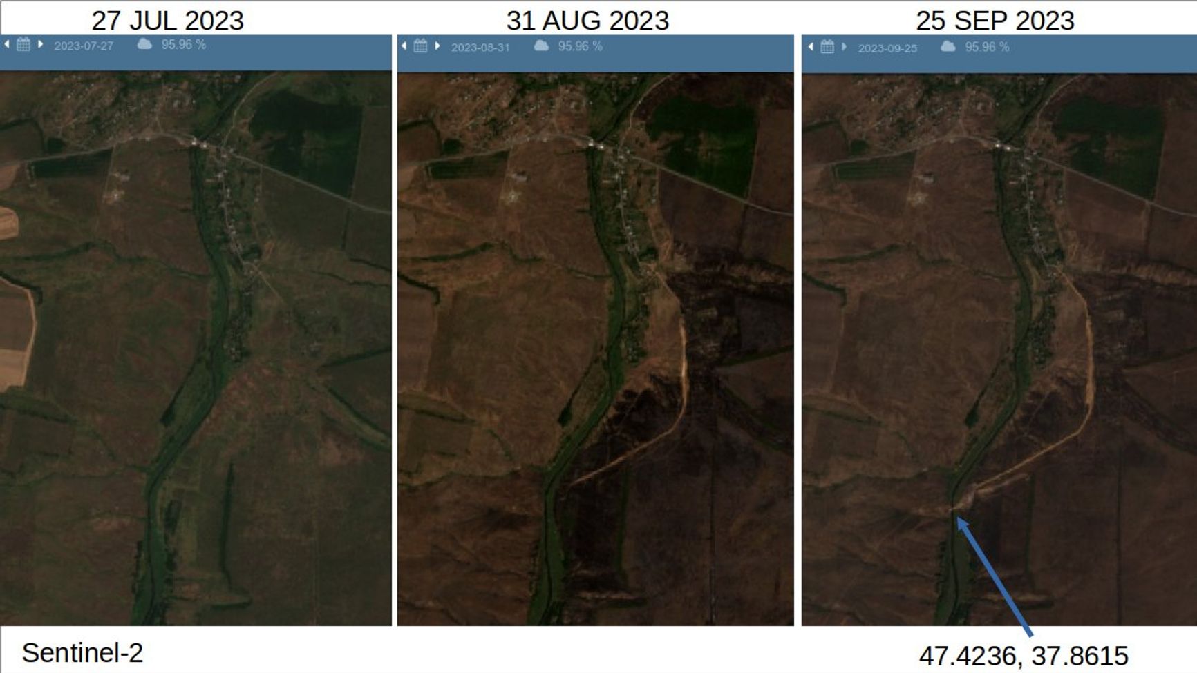 Украинский OSINT-ресурс DeepState выложил кадры боя на Времевском выступе к северу от поселка Заветное Желание.