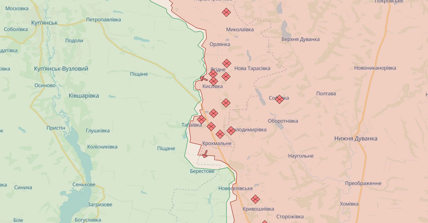Генштаб ВСУ признал отход на «более выгодные позиции» на купянском направлении. DeepState также сообщает о частичном успехе ВС РФ рядом с Кисловкой и Берестовым, к юго-востоку от Купянска.