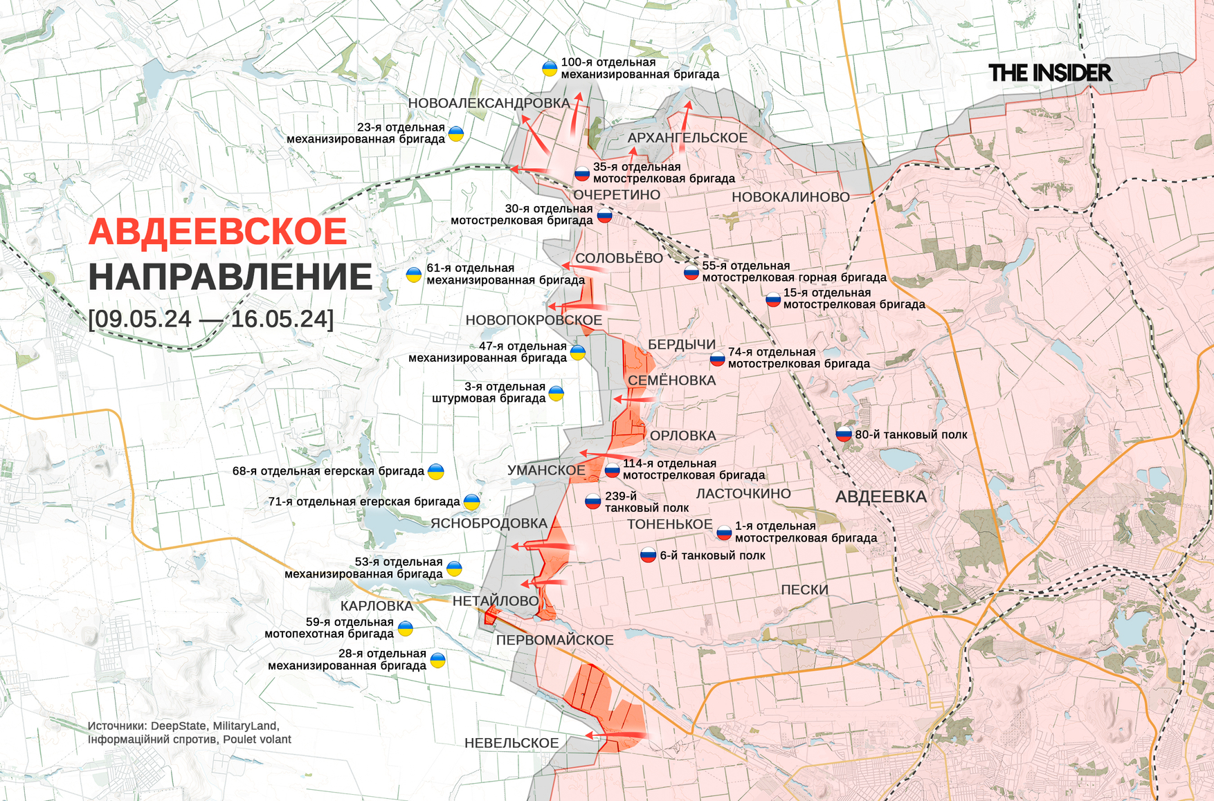 • DeepState — ситуация в районе Волчанска остается тяжелой, северная часть города перешла в «серую зону»;