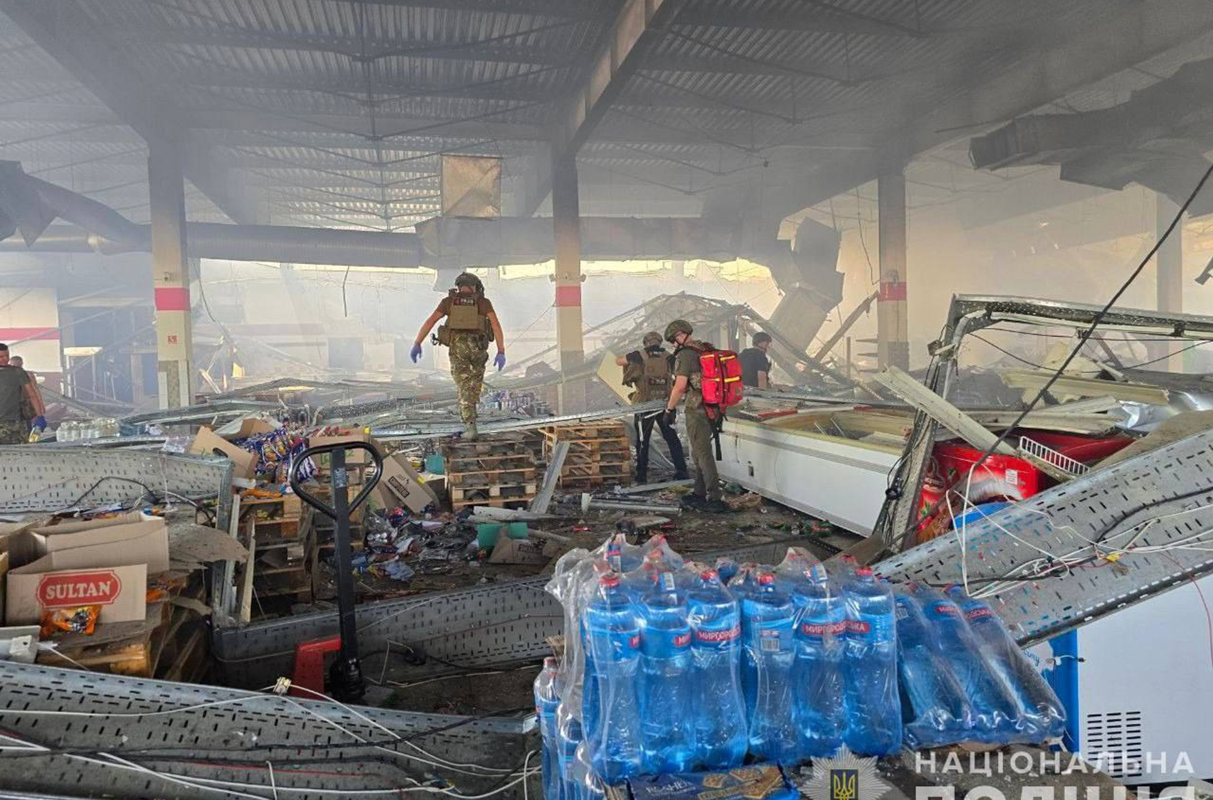Российская армия обстреляла торговый центр в Константиновке Донецкой области. В результате погибло 11 человек, ранено 37. Удар был нанесен около 11 часов утра по местному времени. Здание торгового центра разрушено, там возник пожар на площади в 1000 м², который уже удалось ликвидировать, также были повреждены 4 частных дома, почта, магазины, автомойка и несколько автомобилей. Под завалами могут оставаться люди, поисково-спасательная операция продолжается. По предварительным данным, удар был нанесен ракетой Х-38. Об этом сообщает Нацполиция Украины.