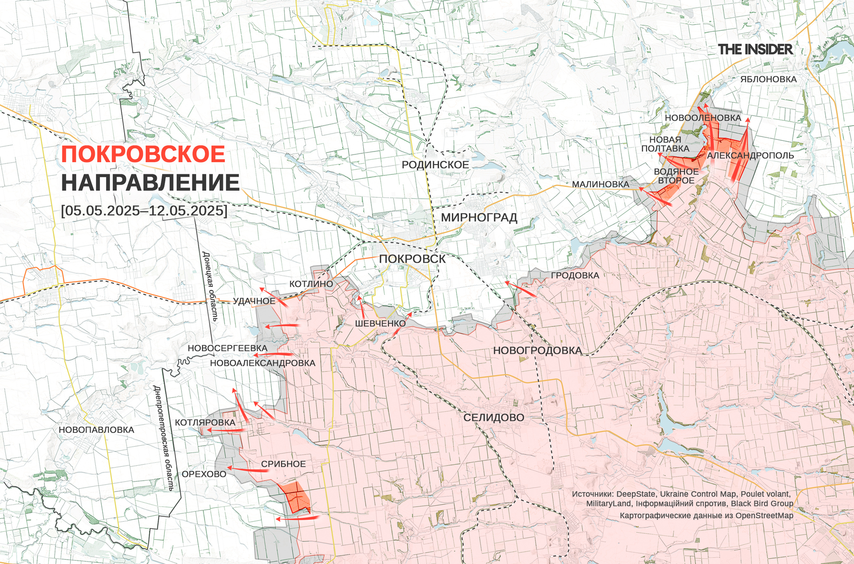 Автор канала «Офіцер ✙» отмечал, что на утро 8 мая на покровском направлении «перемирия» не установилось, продолжались «нон-стопом пехотные штурмы». 11 мая он сообщал об атаках ВС РФ в направлении административной границы Днепропетровской области на участке Новоалександровка — Новосергеевка с применением танков.