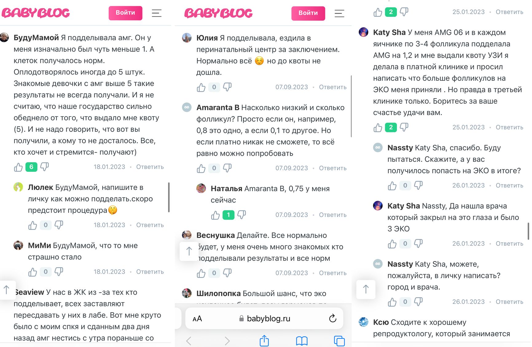 На популярном ресурсе о беременности Babyblog россиянки рассказывают, как подделали анализ на АМГ, чтобы «проскочить по квоте». У этих женщин УЗИ показало нормальную репродуктивную функцию яичников, но низкий уровень антимюллерова гормона, что пришлось обходить за счет подделки.