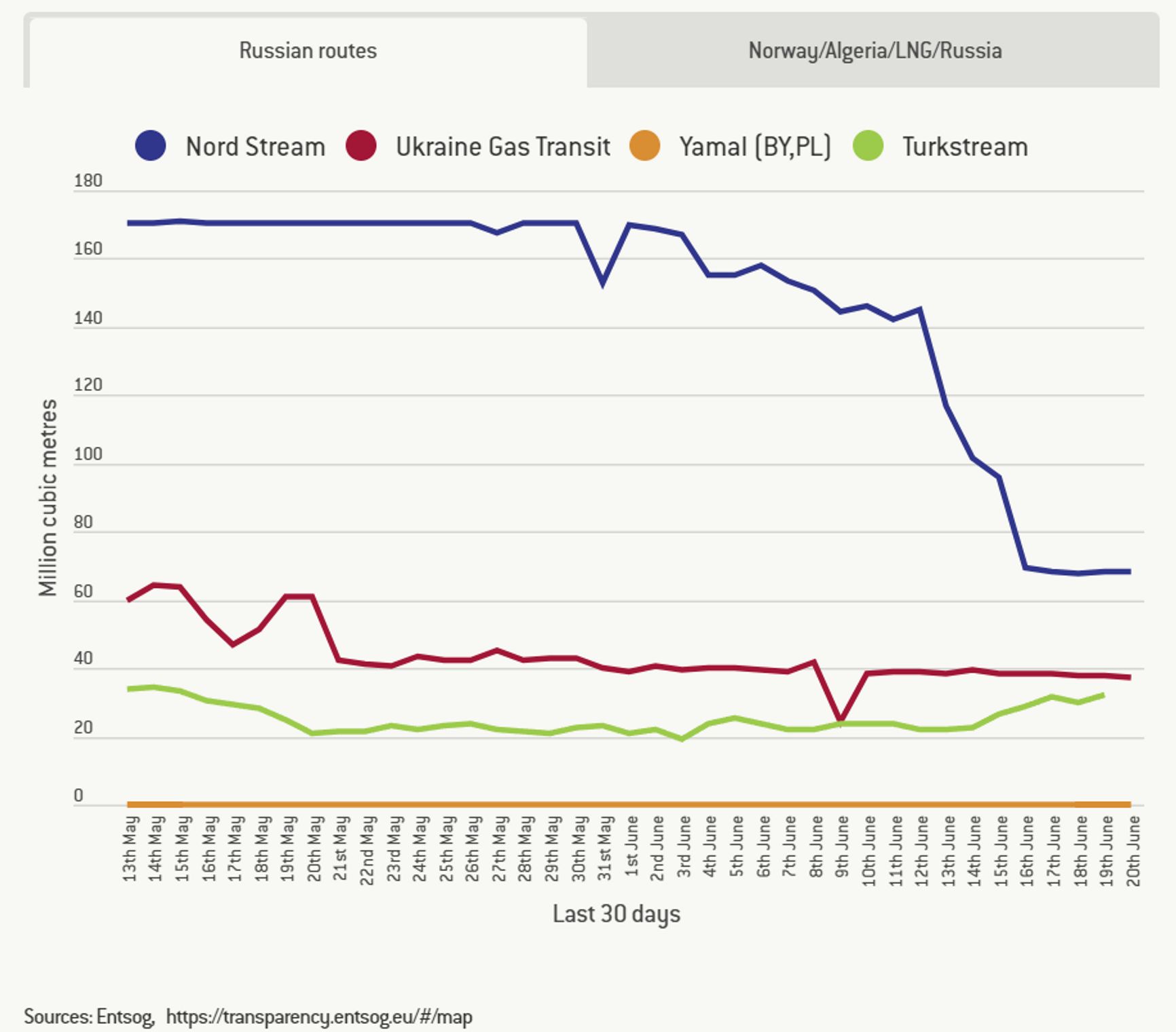Как говорила мисс Марпл, «в одно совпадение я еще готова поверить, но сразу в несколько – ни за что». Среднесуточный объём поставок упал ниже 100 млн кубометров.